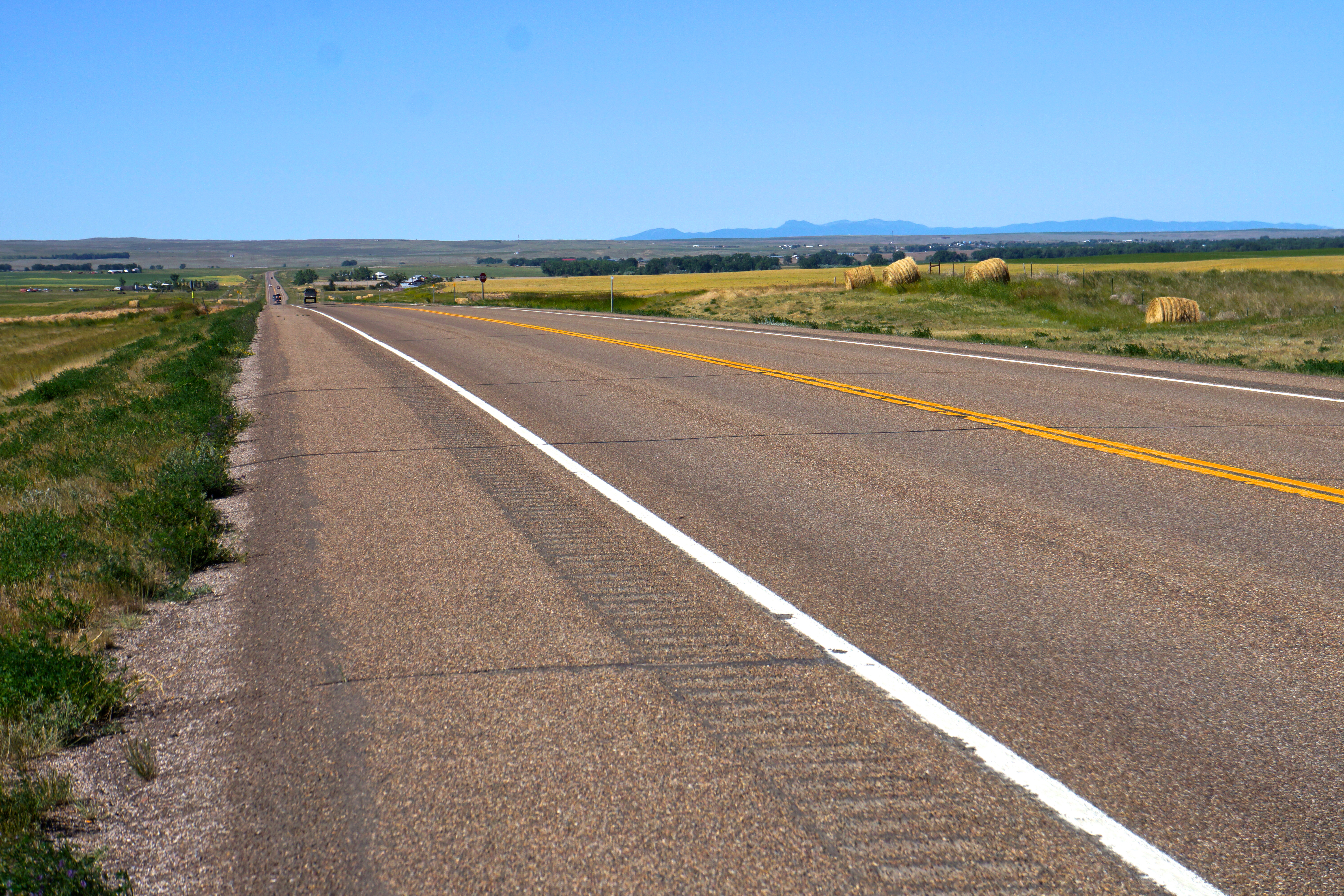 Mile 31: Looking behind me on Route 1 on the Fort Peck Indian Reservation. Route 1 was straight for 20 miles with only one intersection.