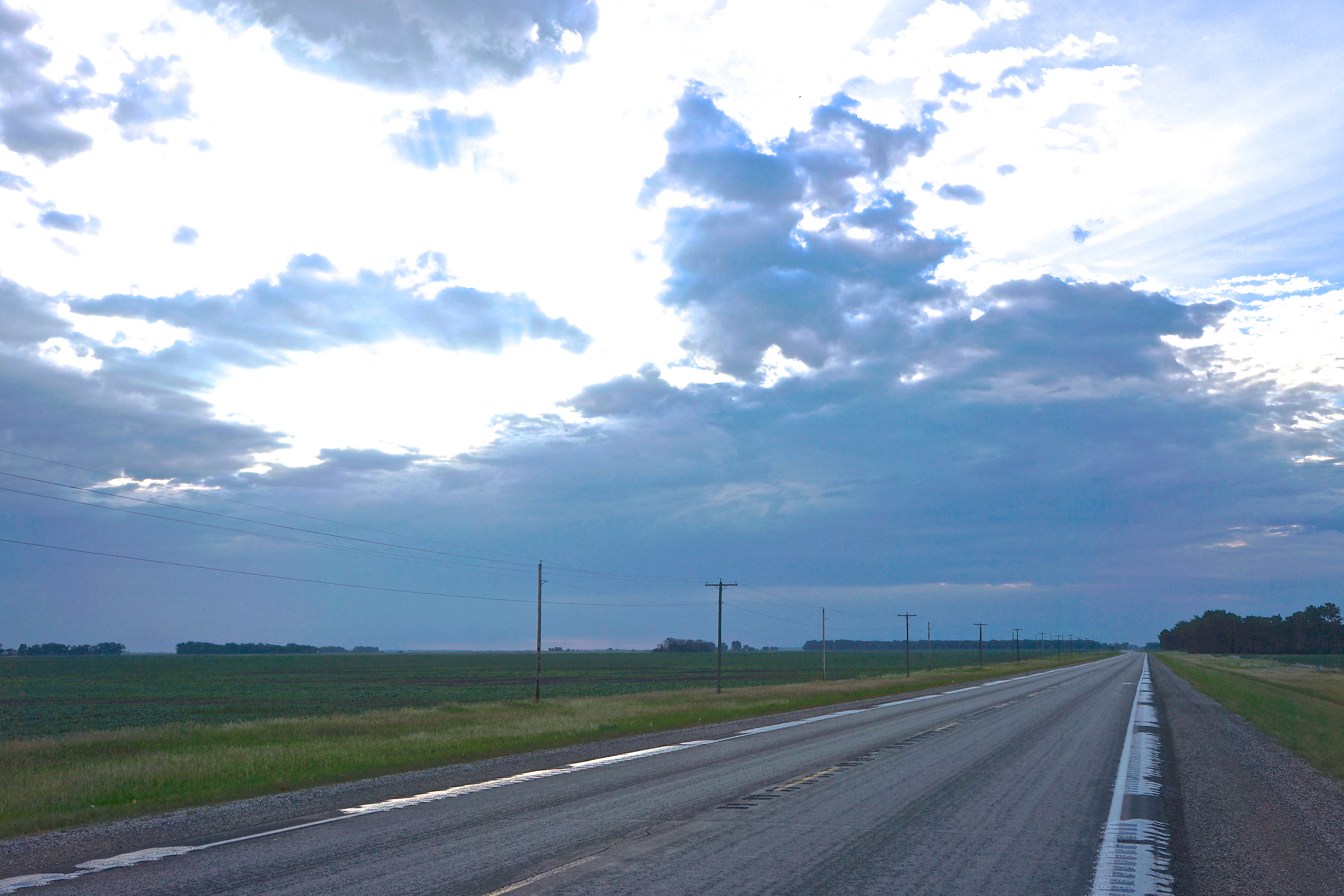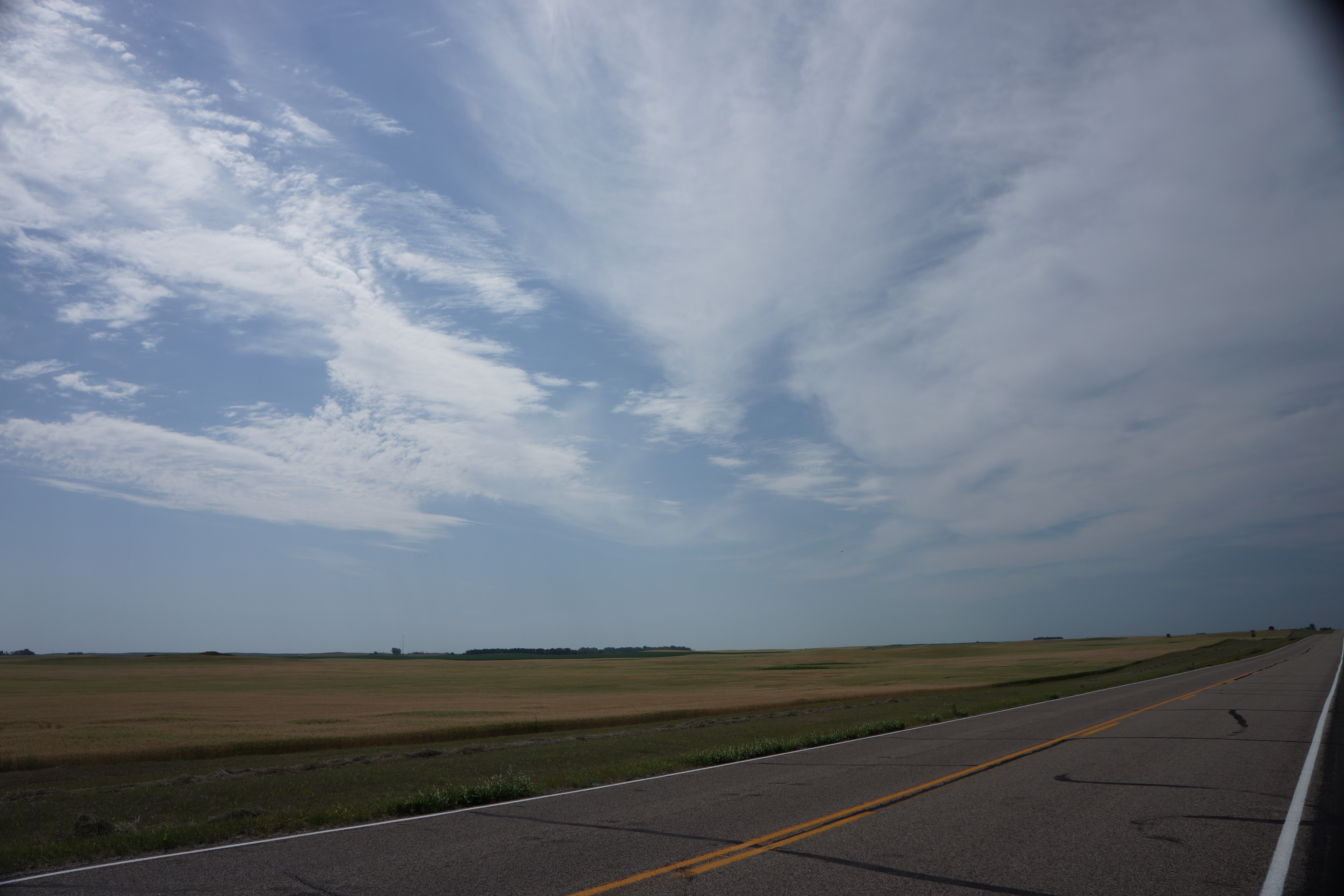 Mile 26 – Route 2 on way to Minot, ND. For the first time on the trip haze is appearing in the sky muting the colors of the scenery.