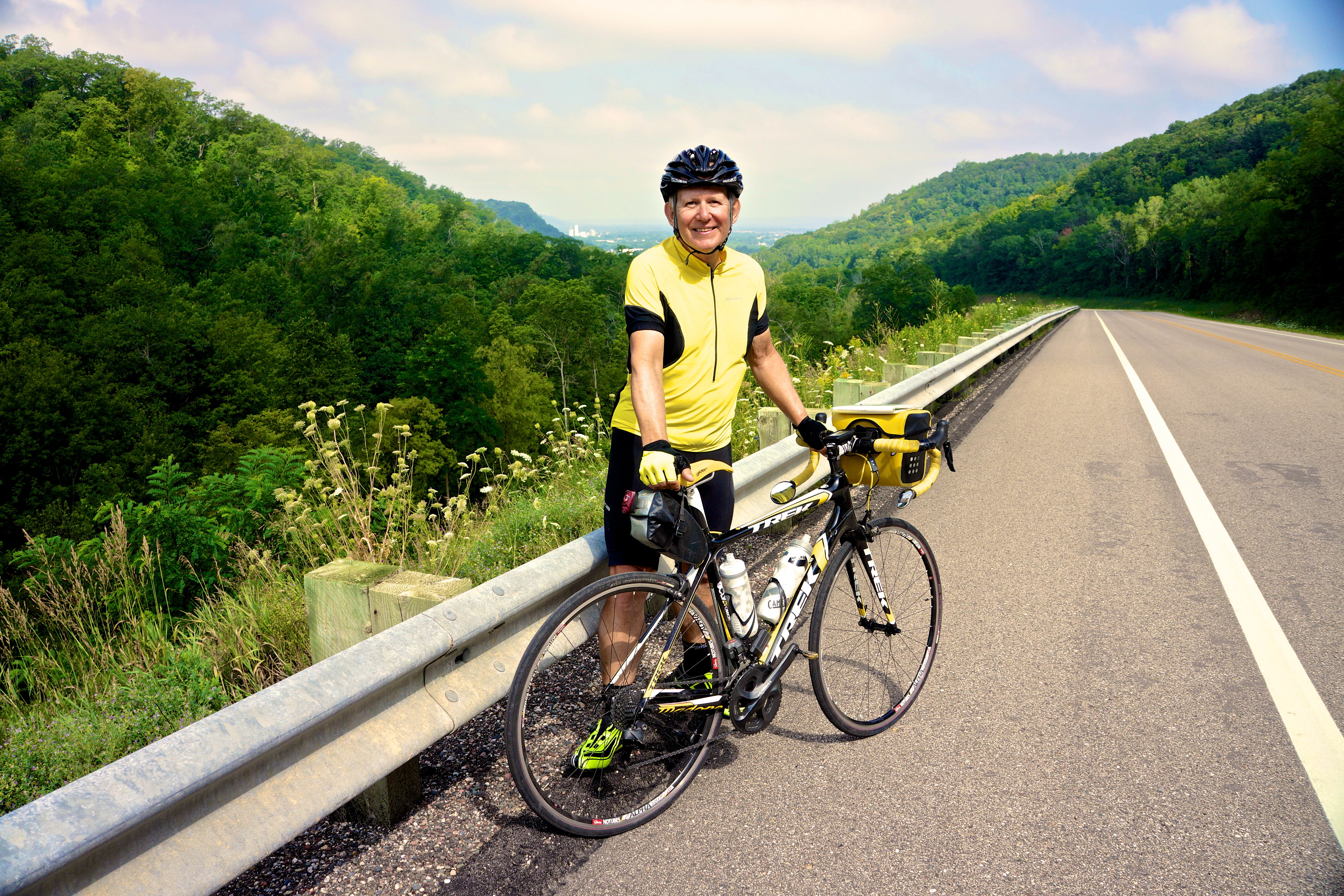 Mile 2: Crossing the Mississippi River for the last time at Muscatine, IA. As you can see from my tan lines I am also wearing for the first time my sleeveless bike jersey for the 100 degree temperatures today.