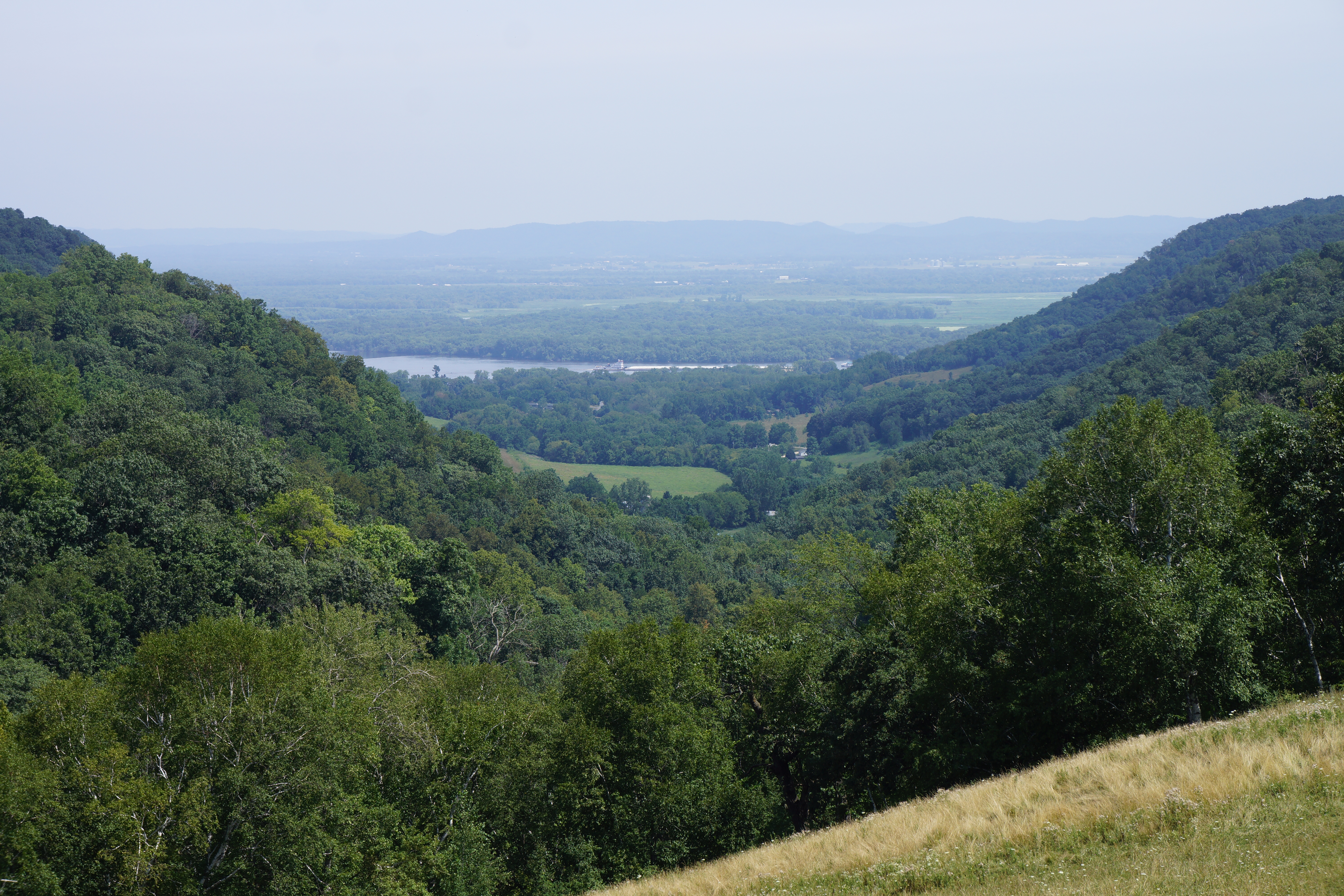 Many of the photos from the last two days represent what I saw today as well. However, at one hilltop I had an unobstructed view to the horizon in every direction – not a single man-made structure (excluding the road) in sight. The notable item besides the beauty was a train in the far distance traveling east.