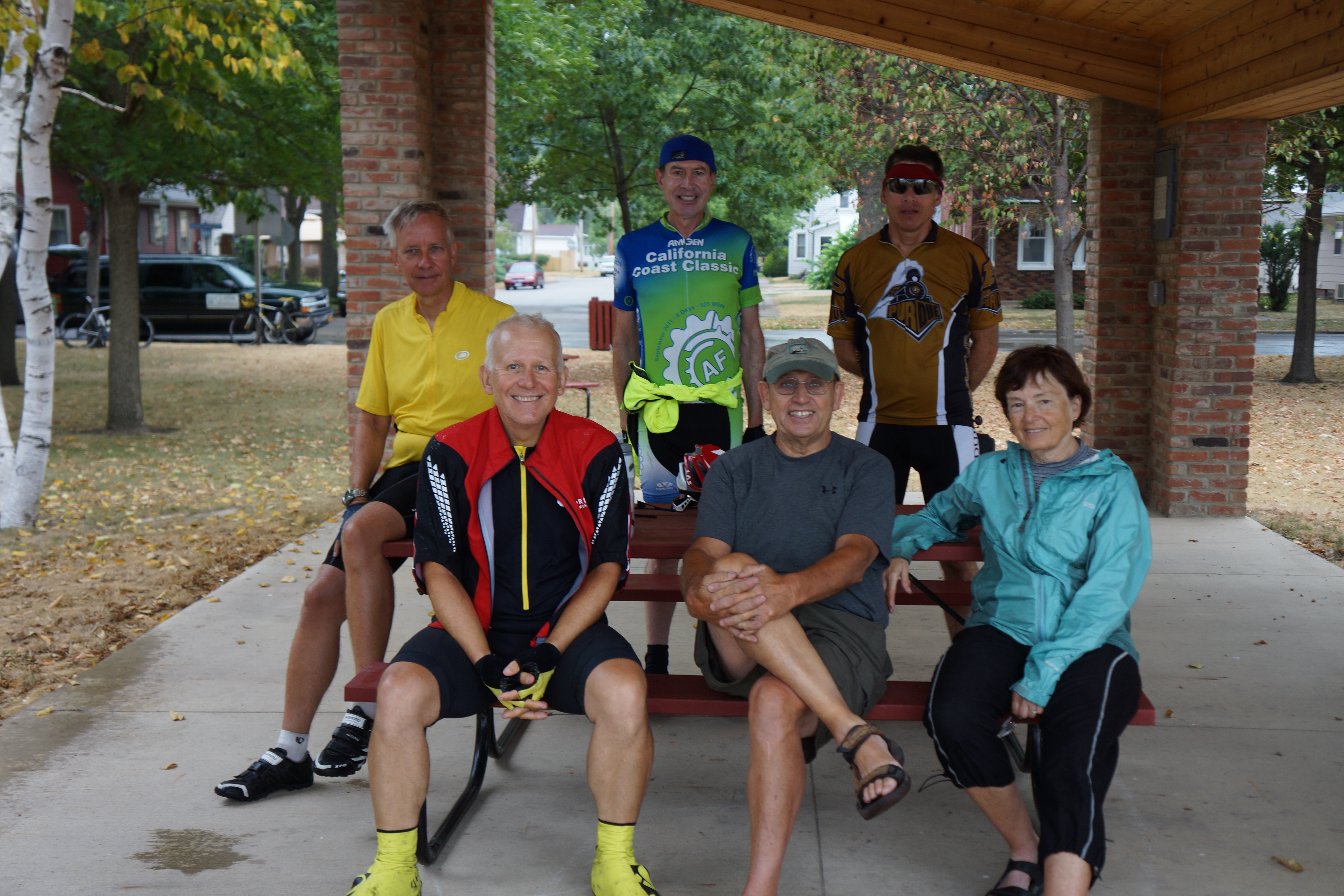 Group Photo at our first SAG rest stop in Guttenberg, IA. Left to right – Jim, Steve, Robert, Dale, Doug, Diane.