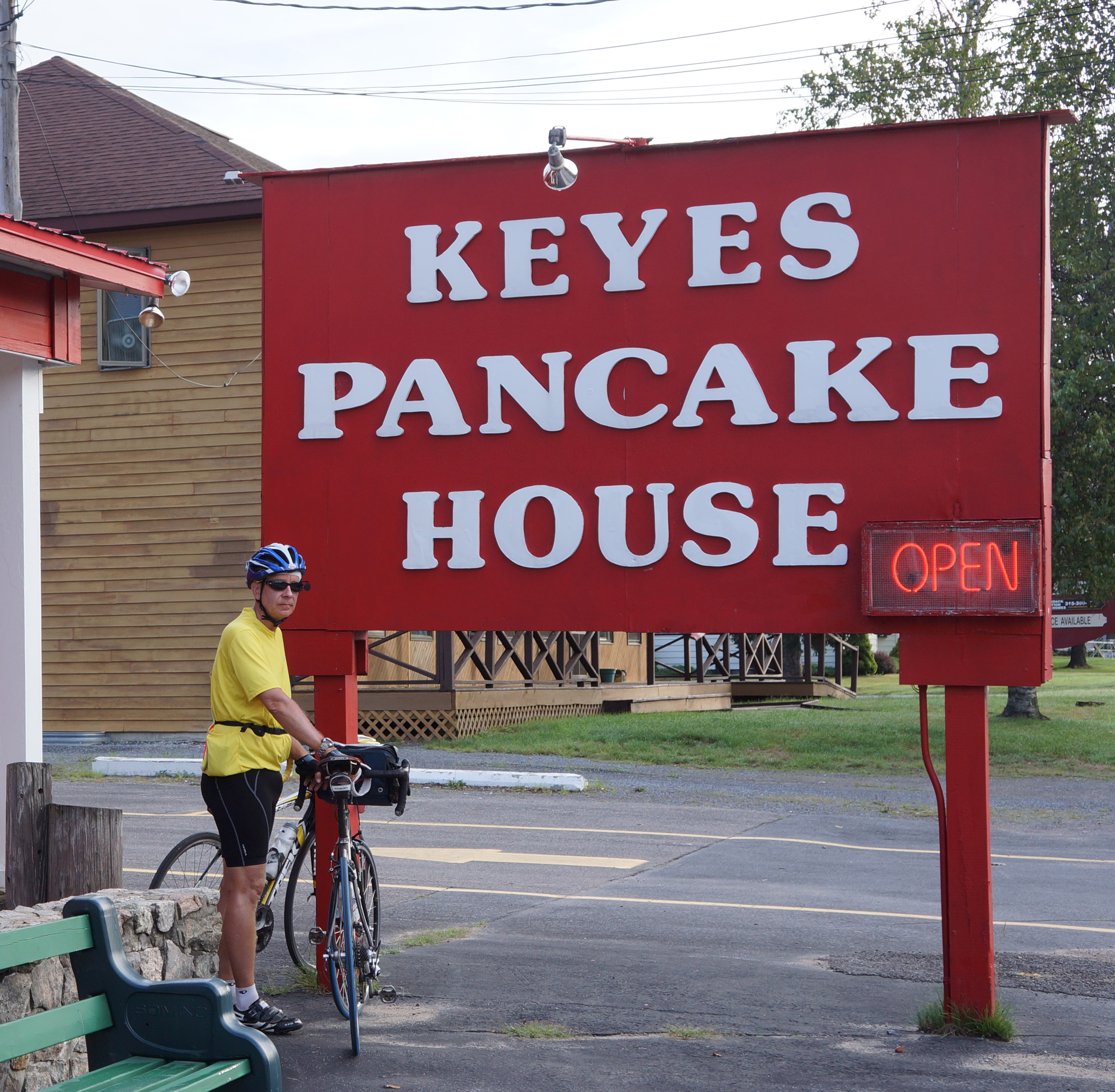 The low was the loss of my energy level early in the day. I felt great for the beautiful first 11 miles of today’s ride from Old Forge to Inlet, NY on a country road. Then it felt like someone had tied anchors to my feet (but no other symptoms) or that the excellent blueberry pancakes I had for breakfast (I am occasionally eating breakfast) went to my feet. I was struggling to maintain my new performance levels for speed and cadence (yesterday I climb more elevation and rode more miles, but went much faster than today). Making me feel even more depressed, dozens of riders were passing me from the Ididaride and our own group at speeds far below my recent performance. Fortunately, the ride was short (only 65 miles) so I arrived at our lodge at about 2pm and spent the entire afternoon napping so I would be in better shape for dinner with Jim, Nini, Ted, and Kristin. I felt surprisingly better after the nap and even more so after a great evening with my friends.