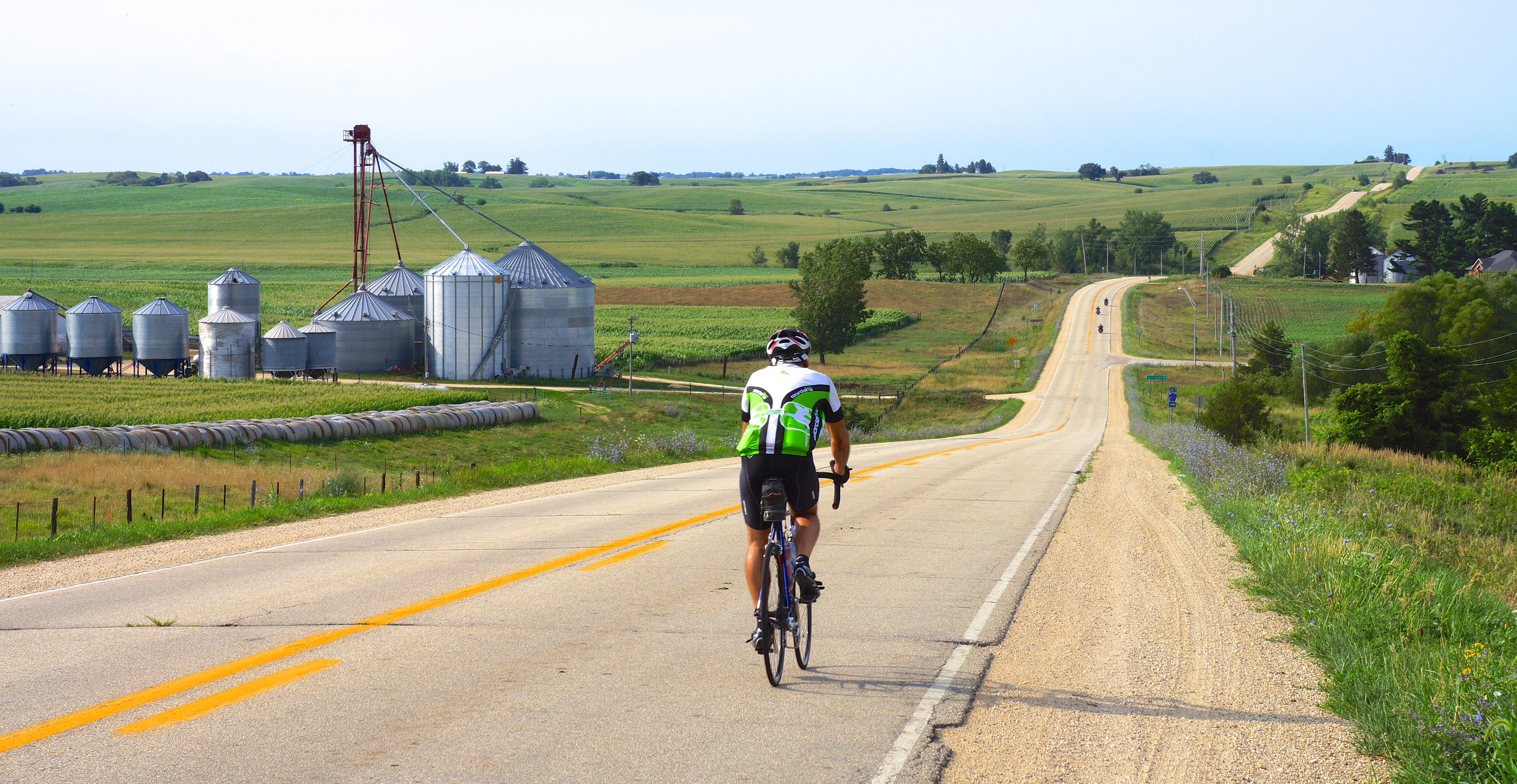 While the roads in Illinois were very smooth for the first 10 miles, they deteriorated. At one point we had to bike on what I would describe as 3 miles of rumble strips – I could barely focus due to the constant jarring and vibration. And then we had the bad luck to face just before Reynolds, IL a 6 mile stretch on which our side of the road had been stripped of pavement yesterday and was being prepared for repaving. While not legal or necessarily the safest action to take, I (and others in the group I was told) biked in the on-coming lane which had just been paved several days ago and was as smooth as can be. Fortunately, traffic was very light and when I saw traffic ahead I darted back to the bad side of road or pulled over to the shoulder until the traffic passed.