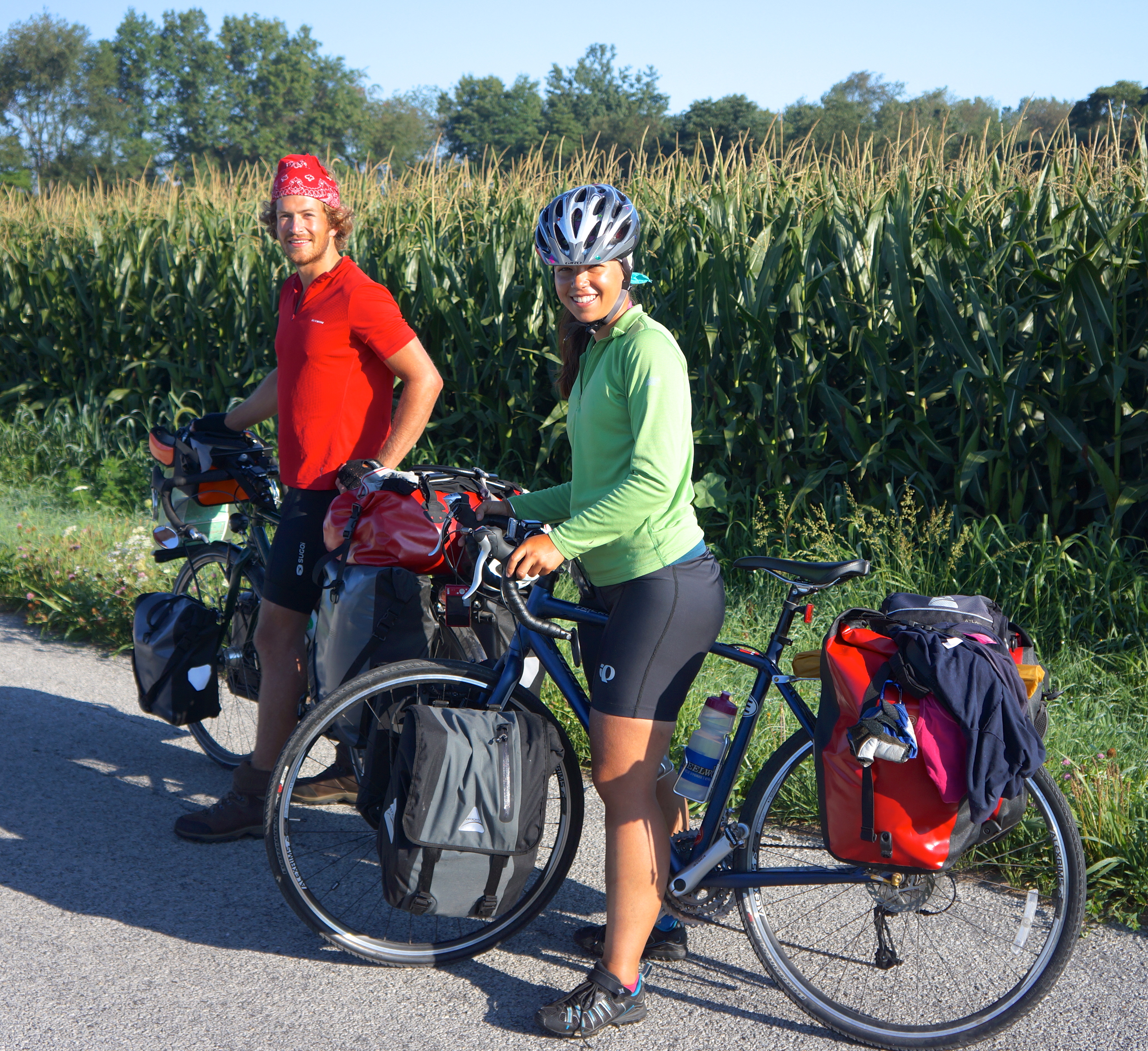Mile 20: Two fellow cross-country travelers (east to west tour) we met on a quiet country road in Indiana. Unfortunately, I can’t find the piece of paper I had with their names, but I can tell you that he is from Germany on a vacation biking across the United States. She is from Boston and is relocating to Seattle to start graduate school. They did not know each other until they met on the road. Yesterday, we met another traveler riding, Dick, who appeared to be similar in age to our group. Dick was riding from Bar Harbor, ME to his home in Des Moines, IA. Last year he road from Seattle to his home, so this summer he was completing the other half of the tour. Several years ago he completed a different transamerica ride from the southeast US to the northeast US. I estimate that we have met several dozen bikers riding cross country since we began out tour.
