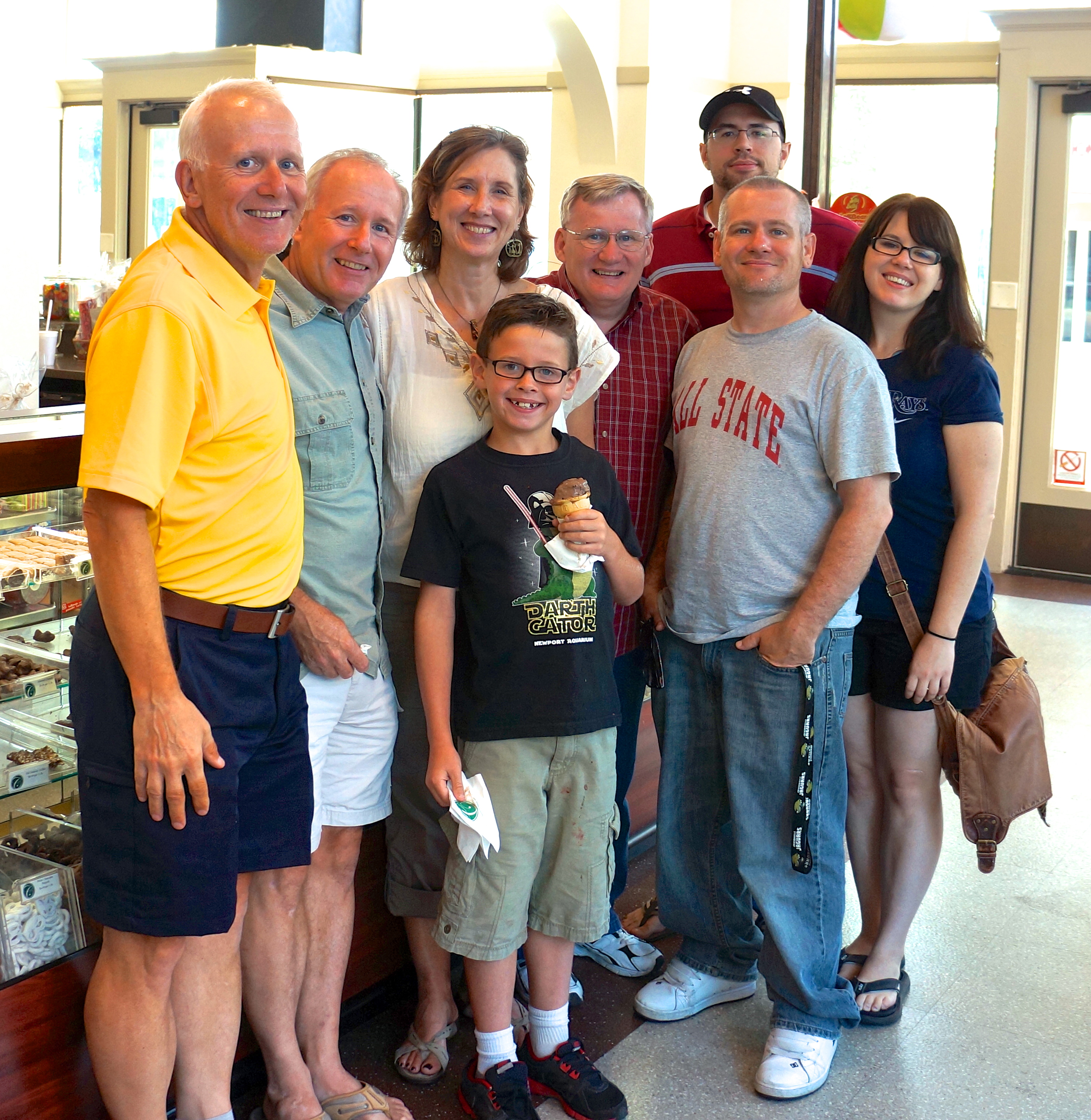 However, the highlight of Wabash was a visit from family. My brother Tom and his wife Judy drove several hours from Nashville, Indiana to visit. My brother Paul flew up from Saint Petersburg, Florida and combined a visit with his children who live in central Indiana with a family reunion in Wabash. Joining Paul in Wabash was his son Keith (who is a junior at Ball State University studying social work), his daughter Wendy (who graduated from Ball State in medical technology several years ago, has been extremely successful in her career, and and is starting her MBA at Ball State this fall), Wendy’s son Jonny and Wendy’s friend Brian. We ended the day with an outstanding dinner at the Charley Creek Inn restaurant, Twenty, and desert at their ice cream/candy parlor. It was great to see everyone and start the planning for a complete Prichard family reunion next year, all brothers and spouses, children and spouses, and grandchildren. It just occurred to me that I need to preference the term spouses with the word current.