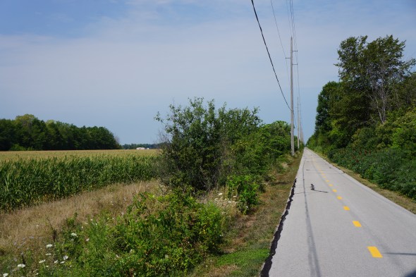 Mile 24: At the intersection of County Road 900N (our route) and Indiana State Road 35, we unexpectedly crossed the “Panhandle Pathway”, a 21mile hiking/biking trail in central/north Indiana.