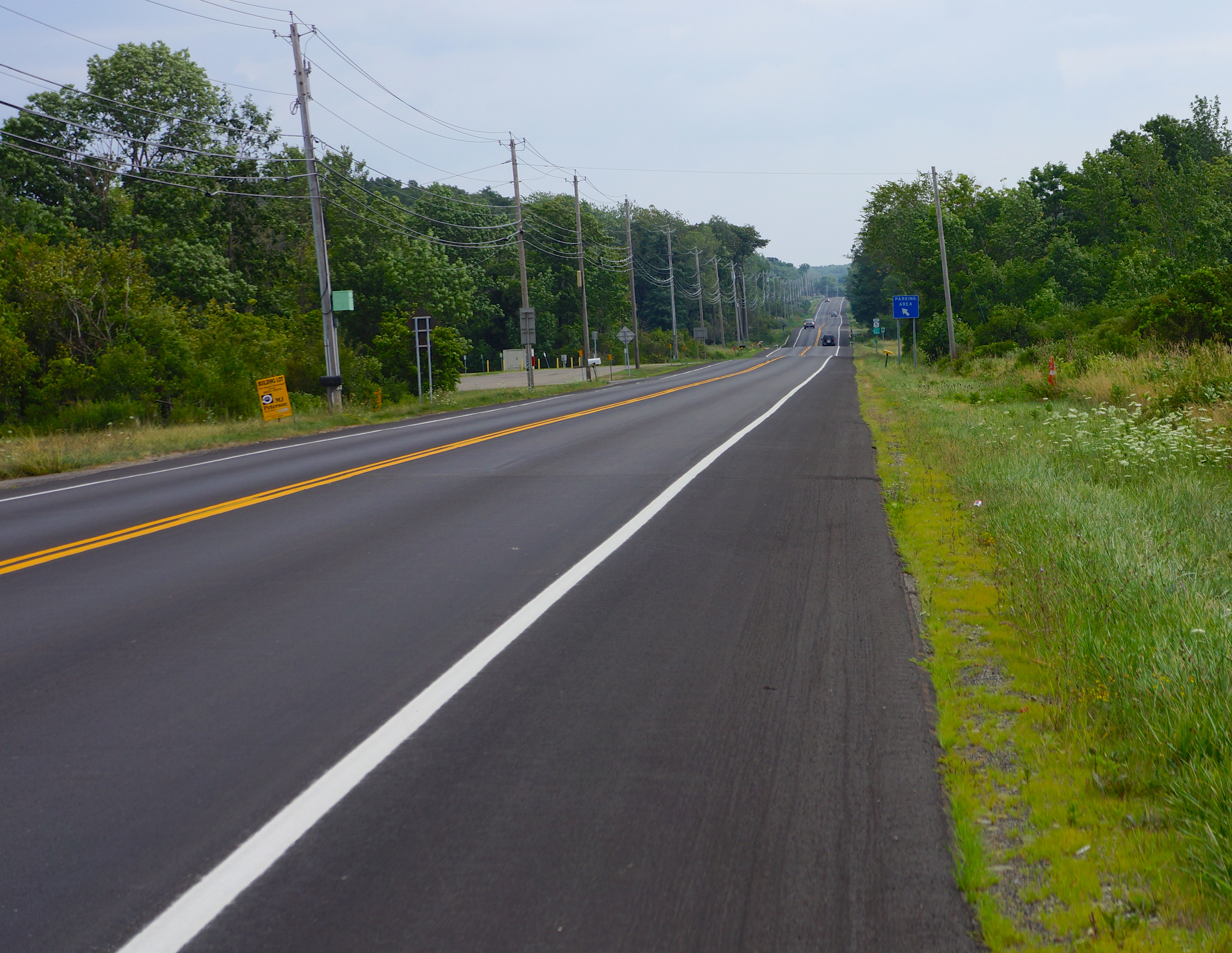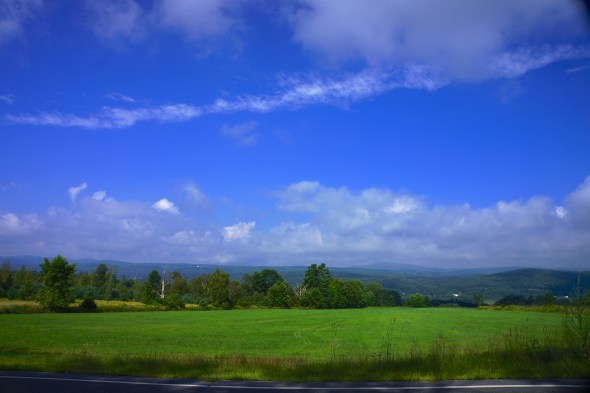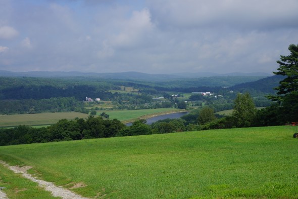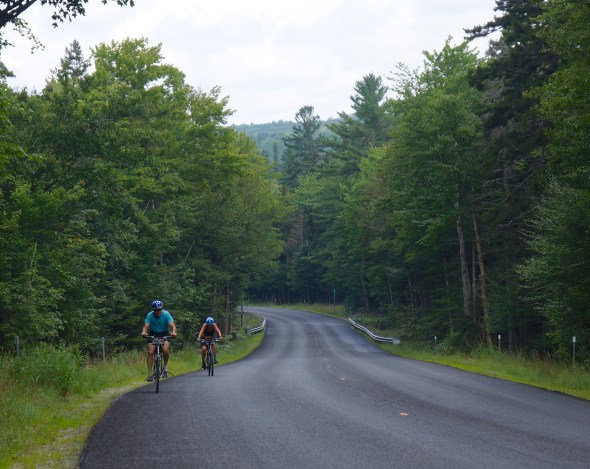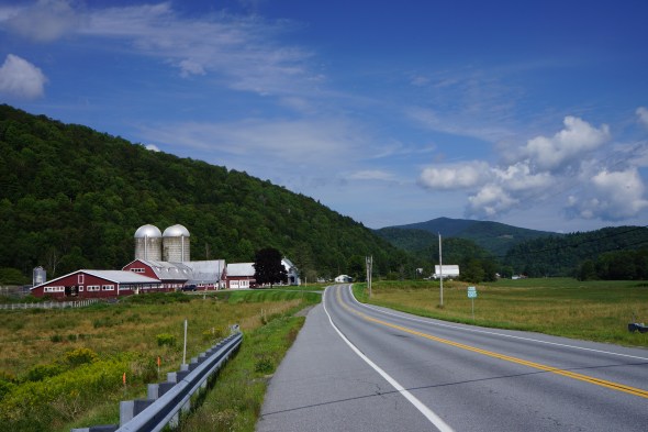 A view of the Vermont bike route with Mollie of Coral Gables, who joined us in Brockport, biking one of the many hills today. You can see the road that led Mollie here in the background.
