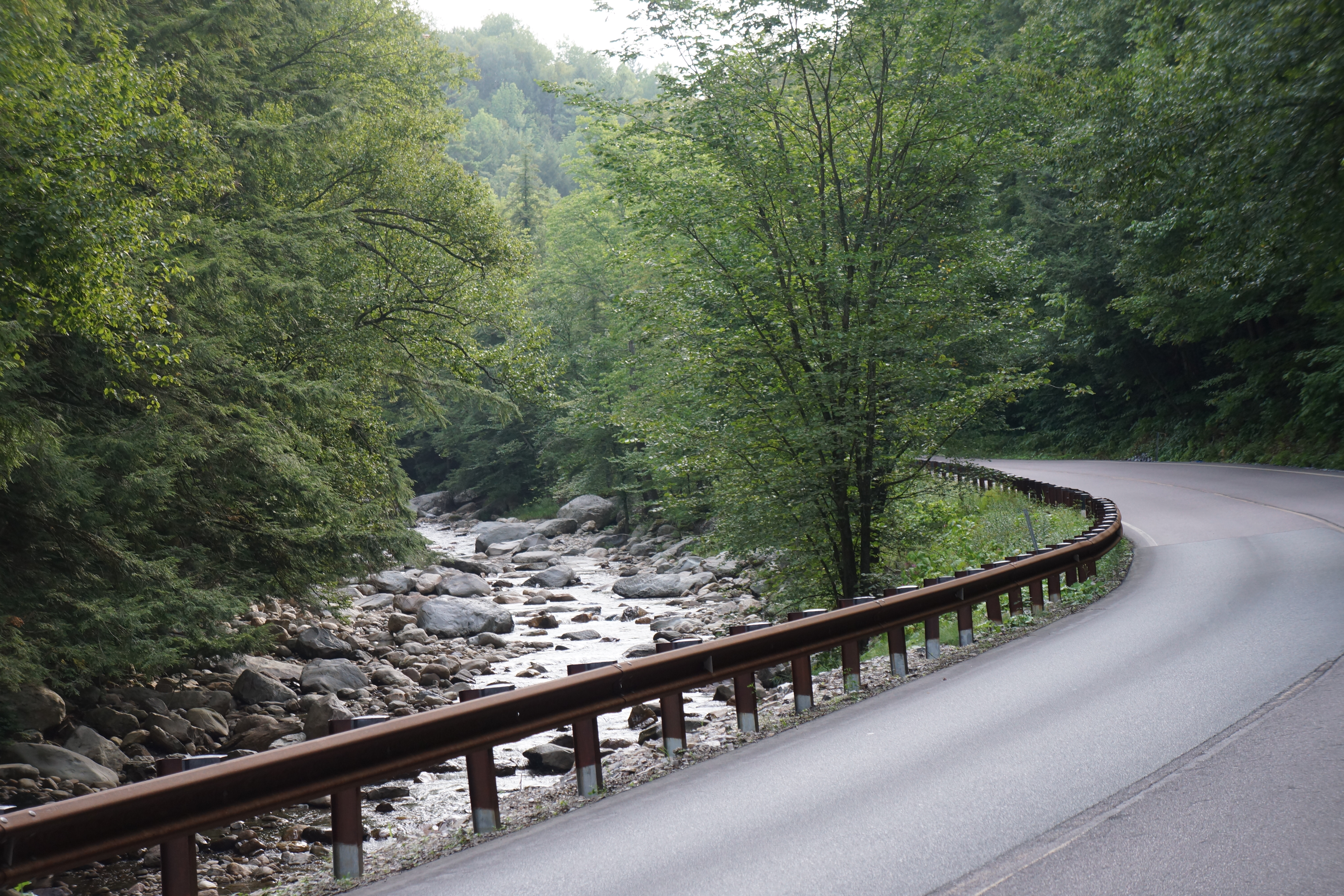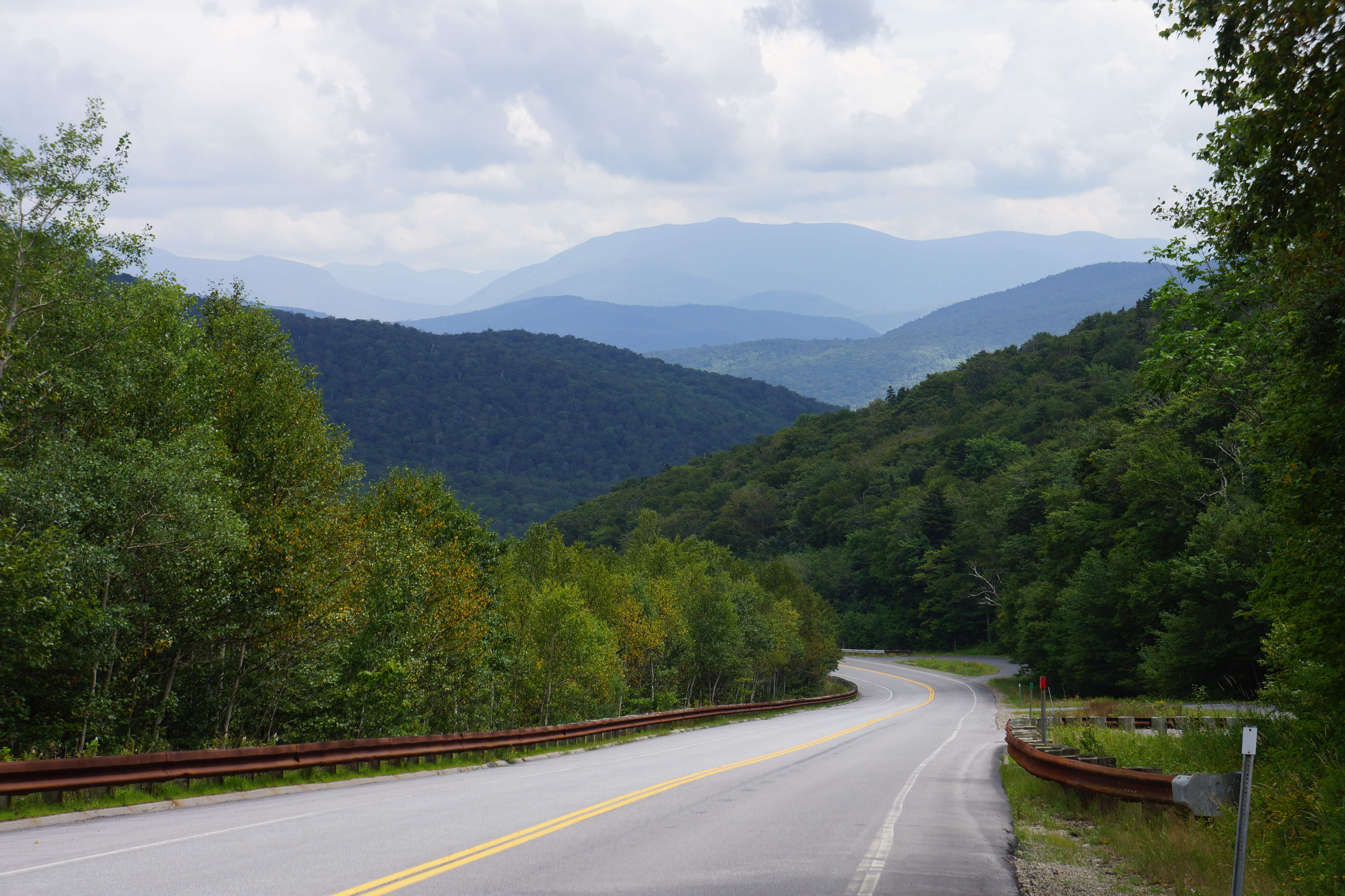Mile 15: Another view of the downhill ride from Kancamagus Pass. It was very tricky stopping the bicycle to take this photo as I was traveling close to 35 mph when I saw the view (which would disappear around the curve) and the road was slightly wet in spots from an earlier shower.