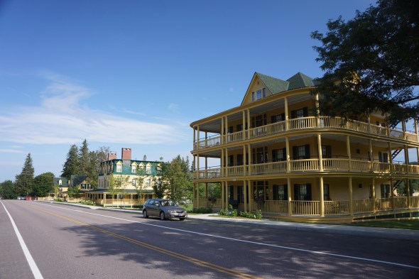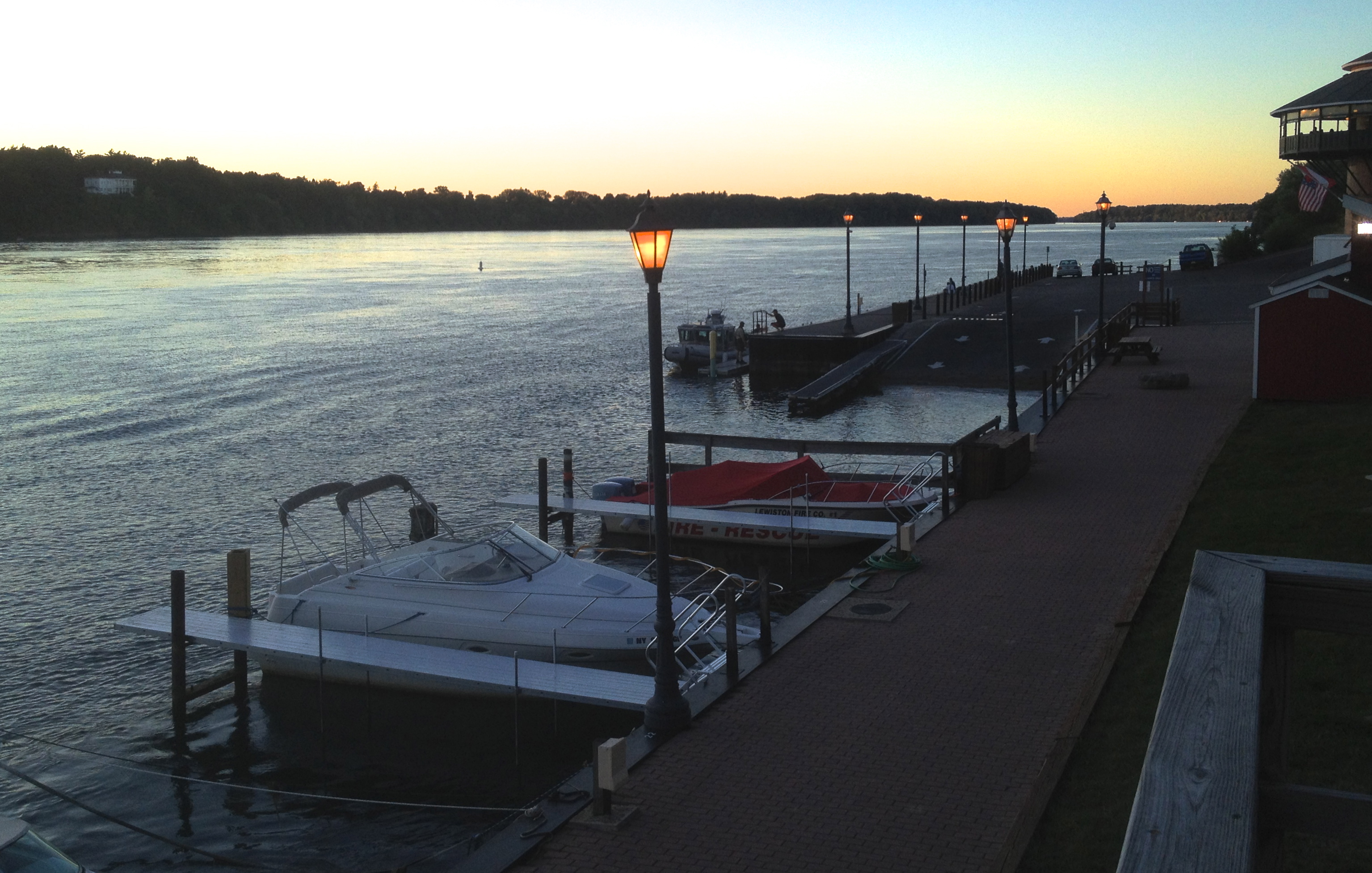 It was with fond memories I biked from Ticonderoga, NY to Middlebury, VT today. About a year ago, Nancy and I persuaded six friends (Shelley & Eugene, Ted & Kristin, and Mike & Cheryl) to join us on a 6 day bike tour (the 1st bike tour for them) of the Lake Champaign region of Vermont. The last 20 miles of today’s ride including 1) the Kissing Bridge in Ticonderoga where Nancy and I were photographed kissing, 2) the Ticonderoga Ferry, 3) the beautiful ride to Shoreham), and 4) Middlebury, were part of last year’s tour which was great. Even our hotel tonight, the historic Middlebury Inn, was the same hotel we stayed in last year. The only things different were my riding ability (increased), the water flow (decreased) in the Otter Creek in Middlebury (a city we love to visit), and the location of dinner (this year we dined at the Two Brothers Tavern where the food was excellent, but the service was painfully slow).