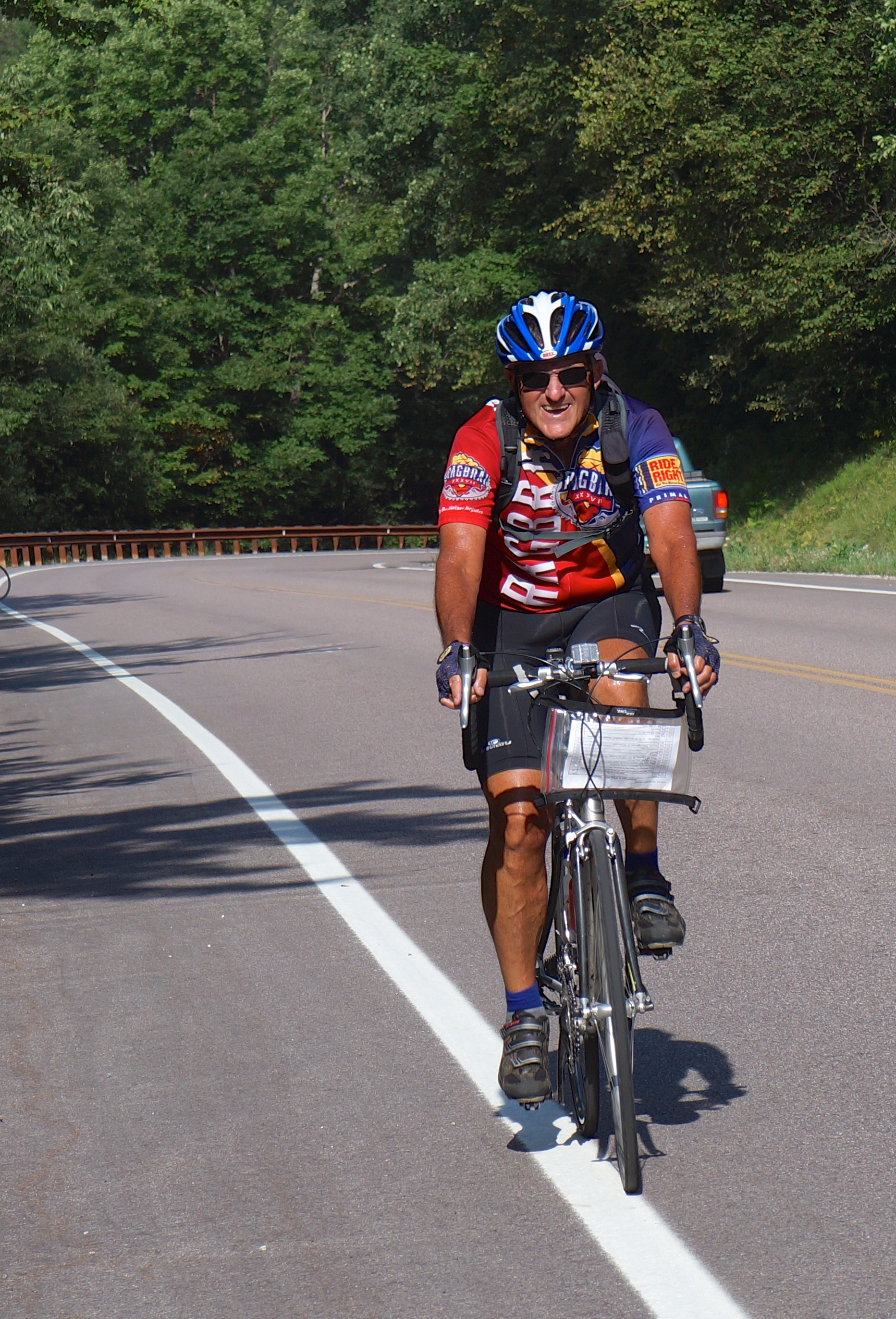 Beautiful scenery, overcast weather, long climb, long downhill. Hard to believe that I only have two more days of riding after today and I touch the Atlantic Ocean and kiss my wife (not necessarily in that order).